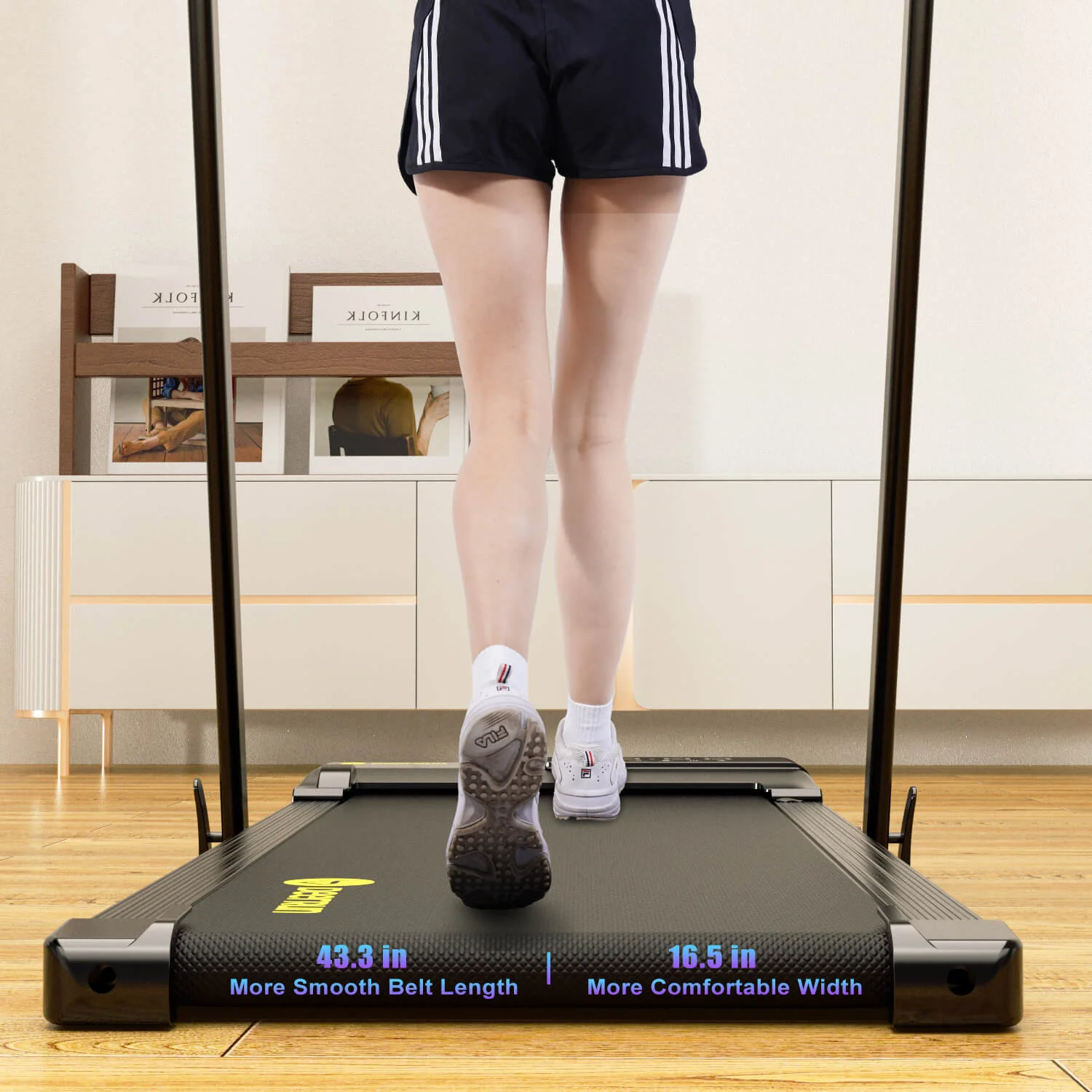 Verwandeln Sie Ihr Training mit einem einfachen Handgriff vom Gehen zum Laufen und verwandeln Sie Ihr herkömmliches Laufband in einen effizienten und komfortablen Laufarbeitsplatz!